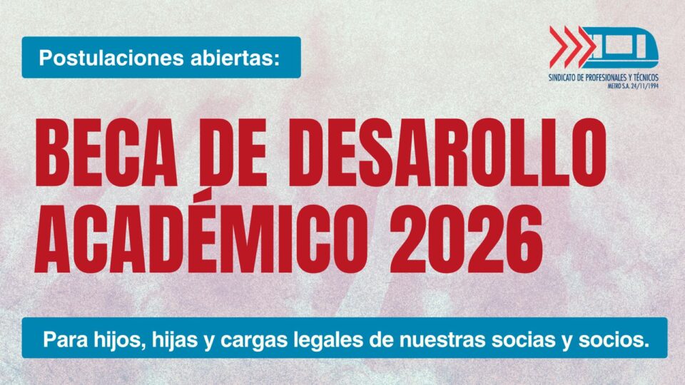 El Sindicato de Profesionales y Técnicos de Metro informa el inicio del proceso de postulación a la Beca Sindical de Desarrollo Académico.